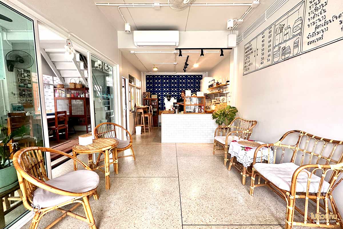 พื้นที่ของคาเฟ่ตกแต่งอบอุ่นแบบมินิมอล เอิร์ทโทน เมนูมีเฉพาะเครื่องดื่ม สามารถมานั่งเล่นชมบรรยากาศชุมชนจากหน้าต่างกระจก พร้อมกับการได้ถ่ายรูปสวยภายในร้าน